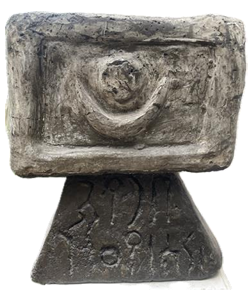 Echoes of Ancient Devotion: A Reconstructed Incense Altar (2002) Inspired by the celestial reverence of pre Islamic South Arabia, this sculpture—crafted from aluminium cement with solar and lunar symbols (38 x 31 cm)—offers a tangible link to a time when sun and moon governed life and meaning. A contemporary expression of enduring ancient wisdom.